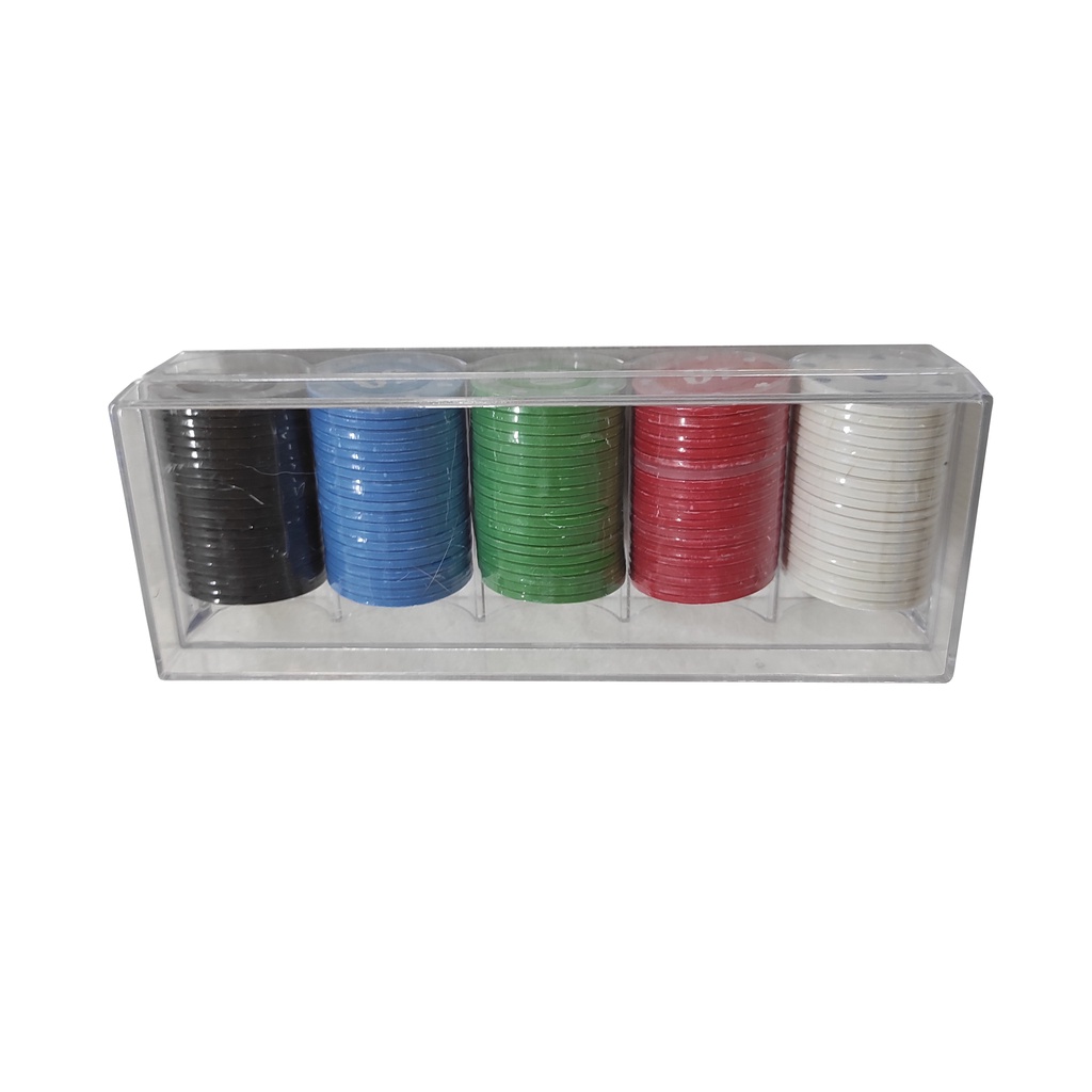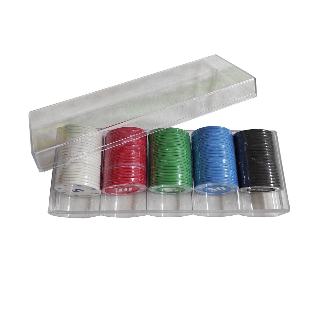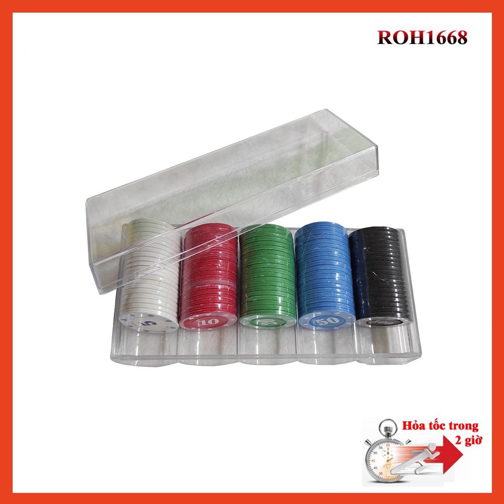 * Số lượng 100 chip bao gôm : 20 chip mỗi loại mệnh giá : 5 – 10 – 20 – 50 – 100
