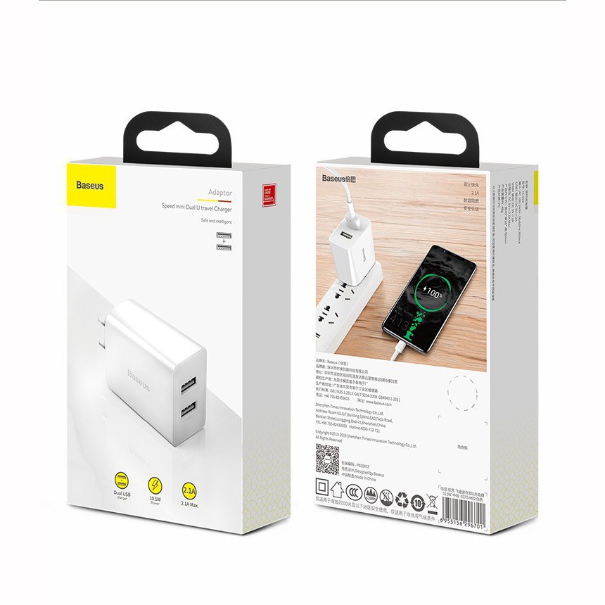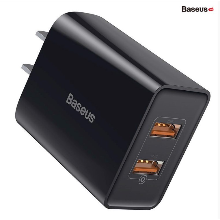 Củ sạc nhanh Baseus 2 cổng 3A QC3.0 và 2.4A – cốc sạc chân gập quick charge 3.0 chống cháy nổ