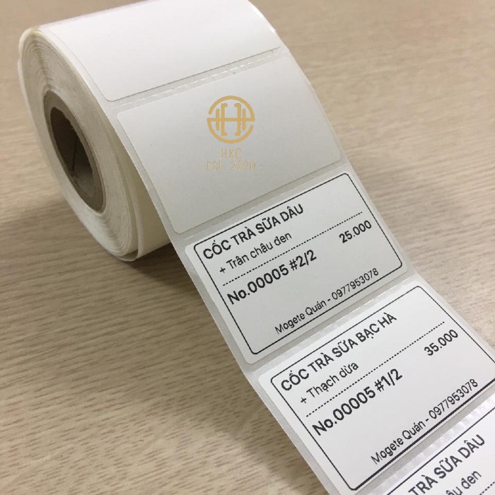 Giấy in tem mã vạch, decal nhiệt khổ 58×40 (tem cân, tem trà sữa, tem trà tranh)