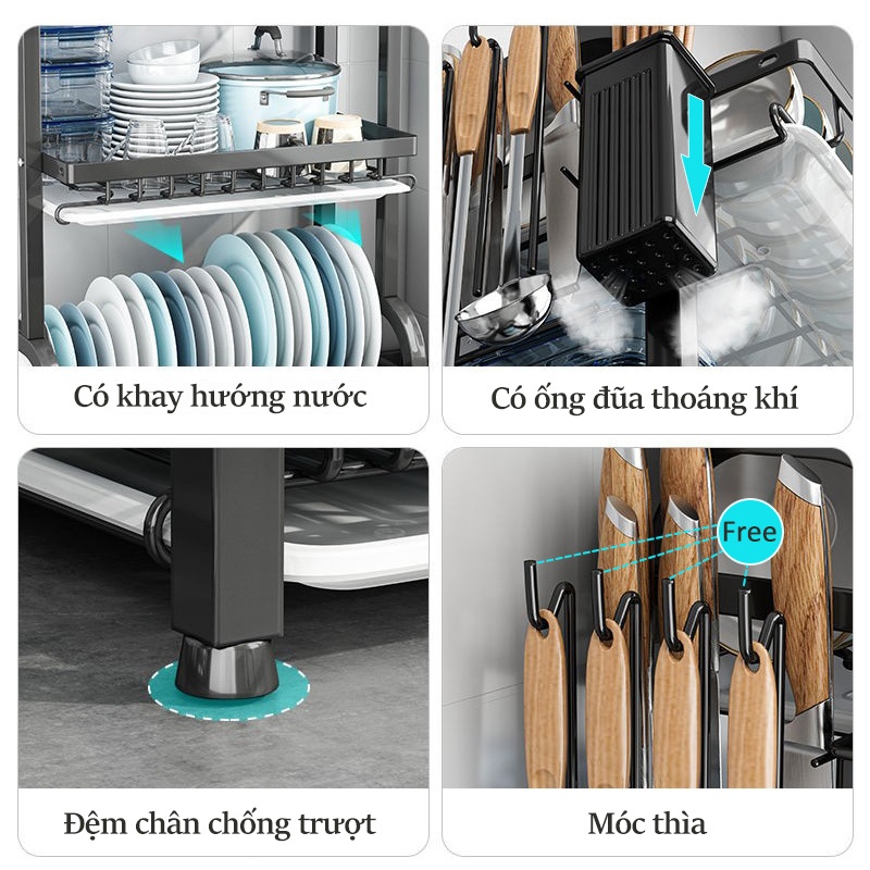 -Sử dụng: để đựng bát đĩa / Dao / Đũa / thớt và các loại dụng cụ nhà bếp v.v.